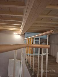 scala a chiocciola ferro verniciato bianco e legno faggio diametro 120 cm altezza 260 cm mai utilizzata e ringhiera abbinata circa 400 cm