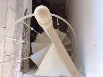 scala a chiocciola in ferro, diametro cm 110 , altezza metri 3 composta da 13 gradini e 1 doppio di sbarco, completa di tutto l'occorrente per un corretto montaggio,nuova.