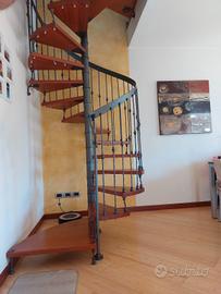 Vendo la scala a chiocciola in foto con struttura in ferro/ferro battuto e scalini in legno massiccio che collega un piano all'altro.