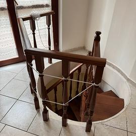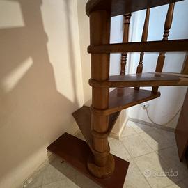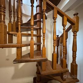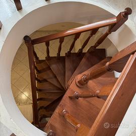Scala a chiocciola in legno in perfette condizioni. Diametro botola cm. 137, altezza da pavimento a pavimento cm. 284.
