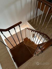 Scala a chiocciola in legno RINTAL. Ingombro 170x70, foro piano superiore 120x130. Buone condizioni.