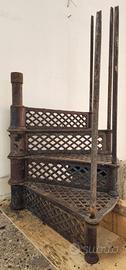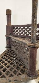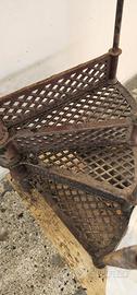 Scala a chiocciola in ghisa del 1940, completa di pedata, alzata, parapetto e corrimano. Ci sono 26 alzate e 23 pedate. Un gradino di sbarco intermedio. Si può raggiungere un'altezza di 3.70 metri, quindi 2 piani. Possibilità di consegnarla sabbiata e verniciata a polvere. I gradini sono larghi 60 cm e l'altezza di ogni gradino è 18 cm. Un ottimo elemento d'arredo per case o uffici con soppalco.