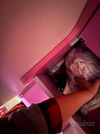 vendo scala a contenitore dai colori del rosa e lilla che va sul bianco la scala e praticamente nuova pagata 250€ i cassetti sopra sono ammortizzati quindi non fanno rumore e alta suppergiù 96cm e larga 45cm