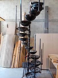 Scala design architetto Le Corbusier anni 50 diametro 120 cm, 16 gradini 17 alzate, h gradino 21,3 cm. Istallazione giro orario o antiorario. La scala e 'inclusa del mancorrente se richiesto ( non originale) elementi componibili verghe da 1200 mm nere. Perfetta per chi cerca un pezzo unico da ristrutturare o per uso decorativo. Adatta anche come elemento scenografico per locali, B&B o ristoranti in stile vintage. Disponibile gia' smontata se richiesto. Visionabile senza impegno.