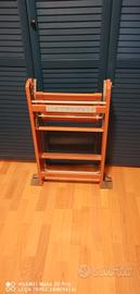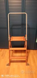 Scaletta pieghevole a 3 scalini in legno, barriere protettive in acciaio, funzionalità e sicurezza caratteristiche della foppapedretti, scale robuste e sicure grazie ai piedini antiscivolo che le tengono immobili quando sono aperte. Quando non servono si chiudono e rimangono in piedi da sole senza doverle appoggiare
