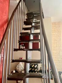 Struttura robusta in metallo, gradini in legno scuro antiscivolo e corrimano curvo per la massima sicurezza.