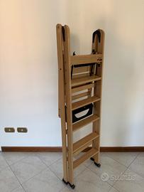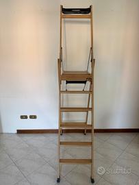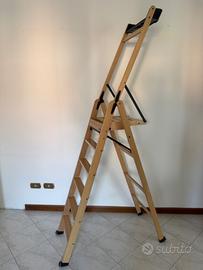 Vendesi CAUSA INUTILIZZO E URGENTE NECESSITA' DI LIBERARE SPAZIO scala in legno Foppapedretti modello La scala, IN CONDIZIONI PARI AL NUOVO ESSENDO IN PERFETTO STATO ESTETICO E PERFETTAMENTE FUNZIONANTE. Scala in legno solida e sicura avente struttura in legno massiccio di faggio verniciato all’acqua, dotata di piedini antiribaltamento e gradini antiscivolo. Struttura in grado di stare in piedi da sola anche quando è chiusa occupando poco spazio, facilmente trasportabile anche quando è chiusa non essendo necessario sollevarla da terra essendo dotata di ruote gommate antigraffio. La scala si differenzia dalle altre essendo dotata di: barriera di protezione maggiorata in altezza, ampia pedana e pratica vaschetta porta attrezzi. Il sistema di bloccaggio di sicurezza impedisce la chiusura della scala garantendo un appoggio solido e sicuro. La scala ha le seguenti caratteristiche tecniche:Portata massima: 150 Kg, Altezza da terra del piano di appoggio più alto: 124 cm, larghezza 42 cm, altezza 150 cm, profondità 14 cm, conformità alla Normativa Europea EN 131. Prodotto comodo da utilizzare nei lavori in quota essendo MOLTO STABILE, consentendo a una persona di media statura di raggiungere anche i punti più alti dei normali soffitti. La versione venduta è DOTATA DI 5 SCALINI A CUI BISOGNA AGGIUNGERE IL PIANO DI APPOGGIO, un prodotto non più in produzione essendo la versione La scala 5.0 dotata soltanto di 5 scalini compreso il piano di appoggio. Avendo il piano di appoggio più alto vi consentirà di lavorare in quota ad altezze maggiori rispetto alle versioni attualmente in commercio. NON SI EFFETTUANO SPEDIZIONI Prodotto facilmente trasportabile con qualsiasi auto privata. Resto a disposizione per eventuali chiarimenti e delucidazioni o per visionare il prodotto di persona senza obbligo di acquisto.