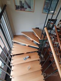 scala a giorno in legno modulare molto bella, conformazione ad elle come da foto, 15 anni di vita in sala mostra, larghezza gradini 100cm con pedata da 26 cm. affare