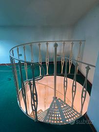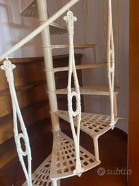 Scala in ferro battuto bianca, con decorazione a giglio, 15 scalini + altri 6 di scorta o per allungarla, h280+solaio 22cm.