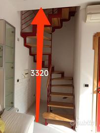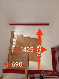 In ferro pieno di 1 cm a taglio laser h 3220 x L 1425 x P 1425 con alzata gradini 20,5 prof gradino 260 spessore gradini 4 cm in massello di frassino tt smontabili .usata pochissimo come si vede dalle foto €3000 trasporto a carico del acquirente.