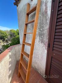 Scala in legno massello, ben tenuta (qualche graffio). Scala per letti a castello o soppalchi, robusta e solida. Un totale di 7 gradini per una misura totale in altezza di circa 230 cm e larga 50 cm. Ritiro a S. Teresa di Gallura zona La Ficaccia