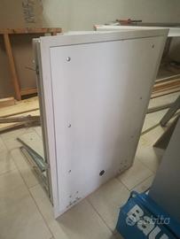 Scala retrattile motorizzata (predisposta per pulsantiera a parete) in Alluminio con gradini antiscivolo, portata fino a 150Kg, corrimano lato DX e maniglioni di sbarco. pannello di chiusura colore Bianco