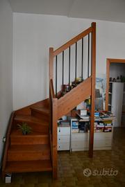 scala per interni nuova in abete verniciato tinta noce.larghezza 80 cm , altezza pianerottolo 150 cm , altezza totale ringhiera 250 cm