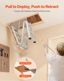Apertura e chiusura senza sforzo: questo sistema di scaletta retrattile per soffitta include un'asta di trazione e un anello, quindi non è necessario salire o acquistare accessori aggiuntivi