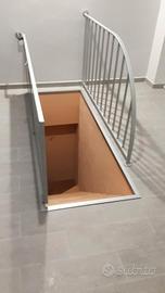 scala in ferro con gradini in legno più botola e ringhiera,montata e usata pochissimo. La scala si smonta in due parti. non spedisco.