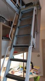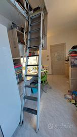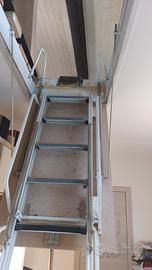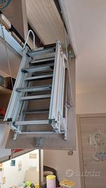 scala retrattile per soffitta misure foro 70x120 circa Fantozzi Scale modello Aci Tre. È una scala molto robusta, verniciata di bianco composta da tre elementi, regolabile in altezza. Niente a che vedere con quella robaccia a pantografo, quando appoggia per terra questa trasmette una robustezza e una sicurezza ai massimi livelli. Difatti nuova costa oltre 500euro nei negozi. Smontata causa ristrutturazione, è in ottimo stato. Solo il pannello di legno avrebbe eventualmente bisogno di una riverniciata in tinta con il vostro soffitto (nasce naturale non verniciato e io ho dato una mano veloce di bianco)