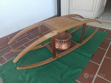 Telaio a forma di mandorla, nel quale veniva posizionato un contenitore per le braci detto "suora", da infilare nel letto per scaldare le lenzuola. Buone condizioni, non tarlato. Perfetto come complemento di arredo rustico, può essere utilizzato come tavolino basso, portariviste, porta legna, porta vasi. Vendo il solo prete a € 20, prete e suora in rame insieme a € 70. Misure prete: larghezza 105 cm, profondità 30 cm, altezza 32 cm. Misure suora: lunghezza con manico 54 cm Diametro contenitore braci 22 cm