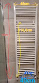 scaldasalviette/ termosifone / termoarredo per il bagno . le misure sono visibili in foto, presenta leggerissima ruggine in un punto in basso (visibile in foto) per il resto funziona perfettamente! non spedisco, solo ritiro a mano in zona