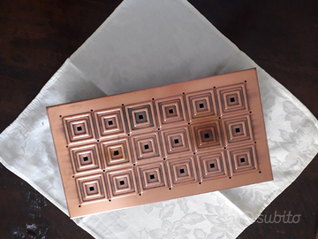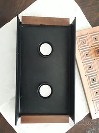 Bellissimo scaldavivande, da tavola in Rame, metallo e legno, misura 34 x 16 cm, all'interno ci sono i supporti per contenere 2 candeline. Come nuovo