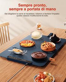 Sicuro e delicato sulle superfici: compatibile con vetro, ceramica, acciaio inossidabile, pentole smaltate, vassoi di alluminio e biberon, mentre il cuscinetto rialzato da 15 mm protegge i piani di lavoro e i tavoli. Un tappetino riscaldante multiuso sicuro per i pasti quotidiani, i buffet e le lunghe riunioni.