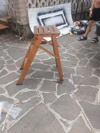 Scaletta in legno, a 3 gradini, pieghevole. Altezza 60 cm. A Cremona.
