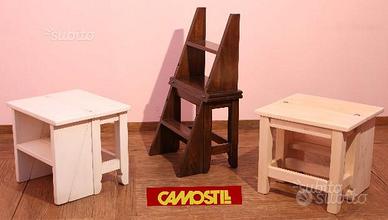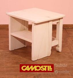 Usufruibile da chiusa come sgabello o tavolino di servizio. Aperta come scaletta praticissima nei lavori di casa.