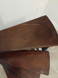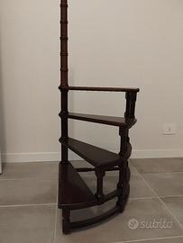 scaletta libreria in legno scuro vintage, 4 gradini forma a chiocciola su un perno tubolare sempre in legno di 123 cm. altezza dalla base all'ultimo gradino 64 cm. profondità 45x45 cm. graffiatura restaurabile sull'ultimo gradino come come in foto. preferisco consegnare a mano perché non saprei come spedire, a meno che l'organizzazione della spedizione sia a carico dell'acquirente. Attenzione, su Subito è obbligatorio indicare la spesa e ho indicato 50 euro, ma su questo aspetto mi organizzo con l'acquirente . eventualmente altre foto su richiesta.