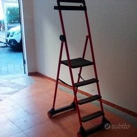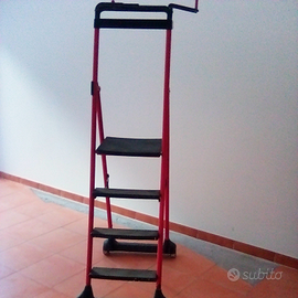 Scaletto usato girevole con ruote e manovella per spostamenti 3 gradini +base di appoggio+vano oggetti .Struttura solida in ferro.Ideale per muoversi in ambienti grandi senza bisogno di scendere.Usato ma tenuto in buone condizioni.