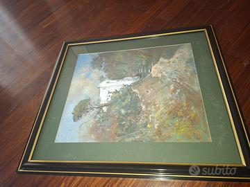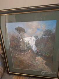il dipinto raffigura un paesaggio collinare con una casa bianca immersa nella vegetazione.