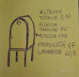 Misure: altezza teca 138cm, altezza totale 210cm, profondita 47cm, larghezza 60,5cm.