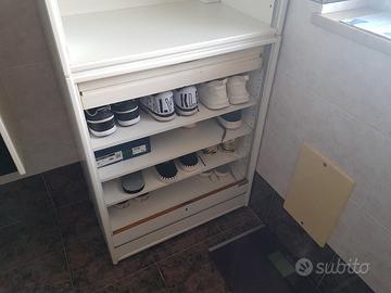2 mobili laccato bianco 170x70x44 uso scarpe e ripiani per biancheria