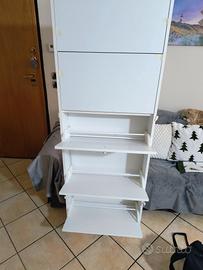 Scarpiera a 5 ripiani in ottime condizioni. unico difetto nell'angolo in alto a sinistra come evidenziato nella foto. Dimensioni: 18X62X282 cm. Ritiro a mano sul posto. A disposizione per ulteriori informazioni.