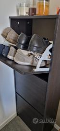 Vendo scarpiera a 3 scomparti a ribalta, effetto legno scuro. Dal design moderno e compatto. È perfettamente funzionante, vendo per cambio arredamento.