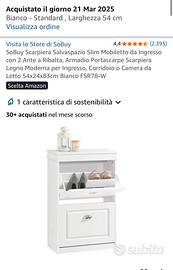 Vendo pari al NUOVO, scarpiera a ribalta a 2 ante, causa TRASLOCO in altre regione.
