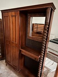 vendo mobile antico in legno ad uso scarpiera e attaccapanni con specchio