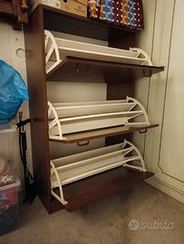 Scarpiera in legno a tre scomparti .Altezza 1 metro e 24 cm - larghezza 73 cm e mezzo - profondità 35 cm e mezzo