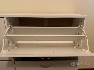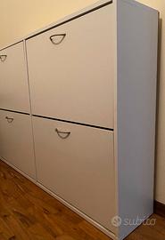 Scarpiera da ingresso, in legno bianco con 4 comodi scomparti. Misure: larghezza 120cm; altezza 81cm; profondità 24cm