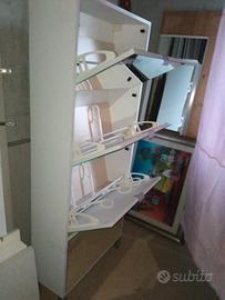 Scarpiera bianca nuova, con quattro sportelli con ribalta a specchio misure H170 L70 P25 non trattabile entro 4