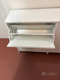 Vendo scarpiera bianca con quattro scompartimenti: Altezza 80 cm Larghezza 120cm Profondita 28 cm