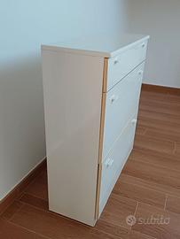 Bellissima scarpiera artigianale in legno bianco laccato , due sportelloni per le scarpe e un cassetto per spazzole e lucidi.
