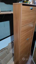 vendo scarpiera usata ma in buone condizioni. l'unico difetto è un piccolo taglio nella schiena ben visibile nella foto. le misure sono: altezza180cm; lunghezza 62cm; spessore 18.5cm