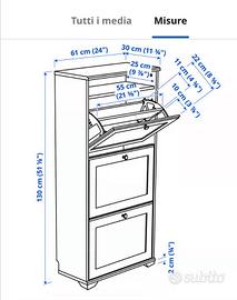 Scarpiera dell'ikea serie brusali, colore marrone legno. Dimensioni come da foto. No spedizione.
