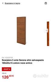 Vendo scarpiera 5 Ante Ribalta Salvaspazio con Ripiani Mobile Slim da Ingresso Portascarpe in Legno FSC, Design Moderno 65x15x173cm color noce scuro pari al nuovo . Pagato 126,00 € a Leroy. Solo chi e verramente interessato/a no perdi tempo. Prezzo trattabile di poco solamente con chi lo vuole veramente.