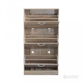 Caratterizzata da tre ante a ribalta con doppia profonditĂ , questa scarpiera permette di riporre piĂą paia di scarpe rispetto a quelle classiche e di averle subito tutte a portata di mano.