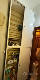 Grande scarpiera composta di due parti sovrapposte (h 130 cm ciascuna) dim. complessive 85,5x40x265h