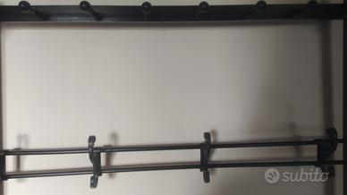 Scarpiera con attaccapanni in ferro. Usata solo un anno, in ottime condizioni. Con 10 gangi totali tra il piano superiore e intermedio per appendere giacca borse cappotti e una seduta con due ripiani per accogliere ogni tipo di scarpa. Misure: H 170,5×99,5x28. NO spedizione, Ritiro a domicilio.