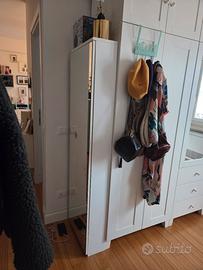 Vendo scarpiera salvaspazio con anta a specchio a tutta altezza. Ideale per ingresso, corridoio o camera da letto: permette di organizzare le scarpe occupando pochissimo spazio e allo stesso tempo funziona come specchio a figura intera.