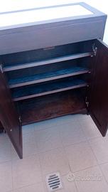 scarpiera fatta a mano, colore noce, stile arte povera, tre ante, piano superiore in marmo. lunghezza cm 92, altezza cm 84 e profondità cm 34. euro 99 non trattabili.