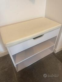 Scarpiera da Ingresso,Panca con Scarpiera,Portascarpe Salvaspazio con Seduta Imbottita, Cassapanca in Legno,Portascarpe con Cuscino per Ingresso o Corridoio 60x29.5x48cm Bianco
