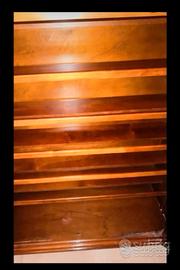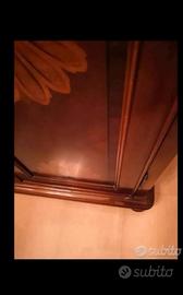 vendo una scarpiera in legno tinto noce con due ante finemente decorate con fiori e 7 ripiani.Misure: larghezza cm105, altezza cm 150, profondità cm37. Non è possibile spedire.Solo vendita di persona.